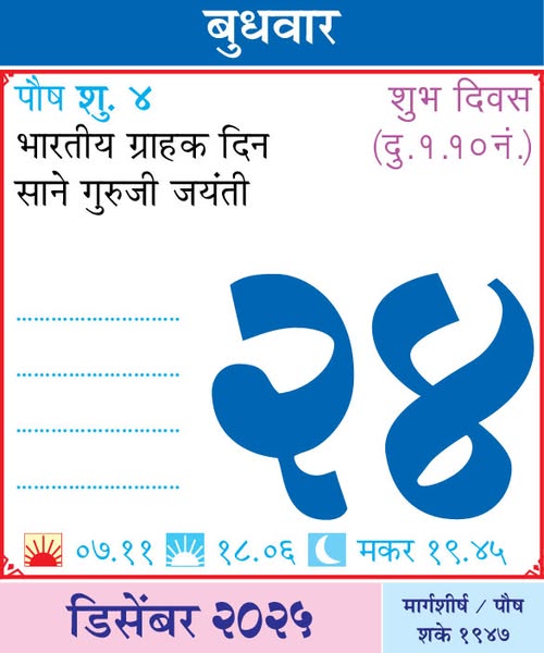 25 December 2025 Horoscope / २५ डिसेंबर २०२५ राशि भविष्य