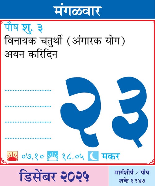 23 December 2025 Horoscope / २३ डिसेंबर २०२५ राशि भविष्य