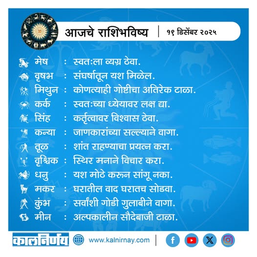 19 December 2025 Horoscope / १९ डिसेंबर २०२५ राशि भविष्य