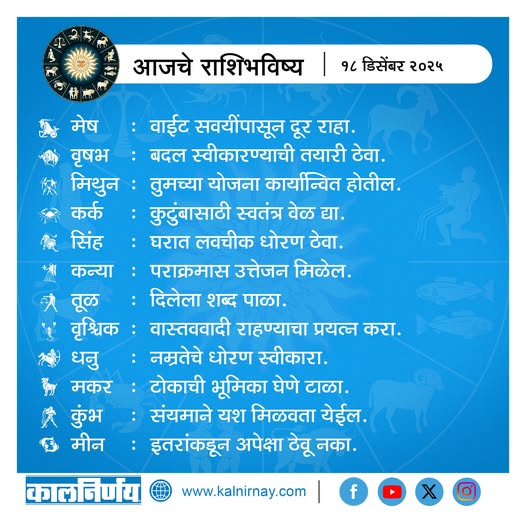 18 December 2025 Horoscope / १८ डिसेंबर २०२५ राशि भविष्य